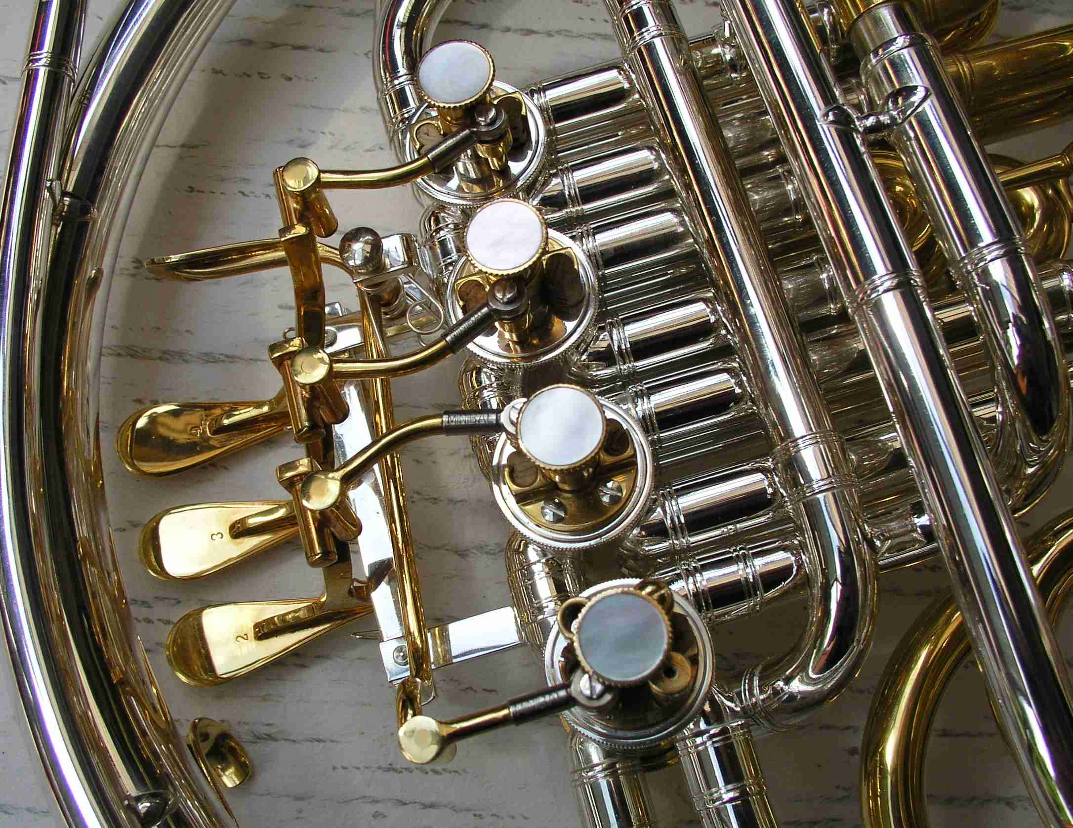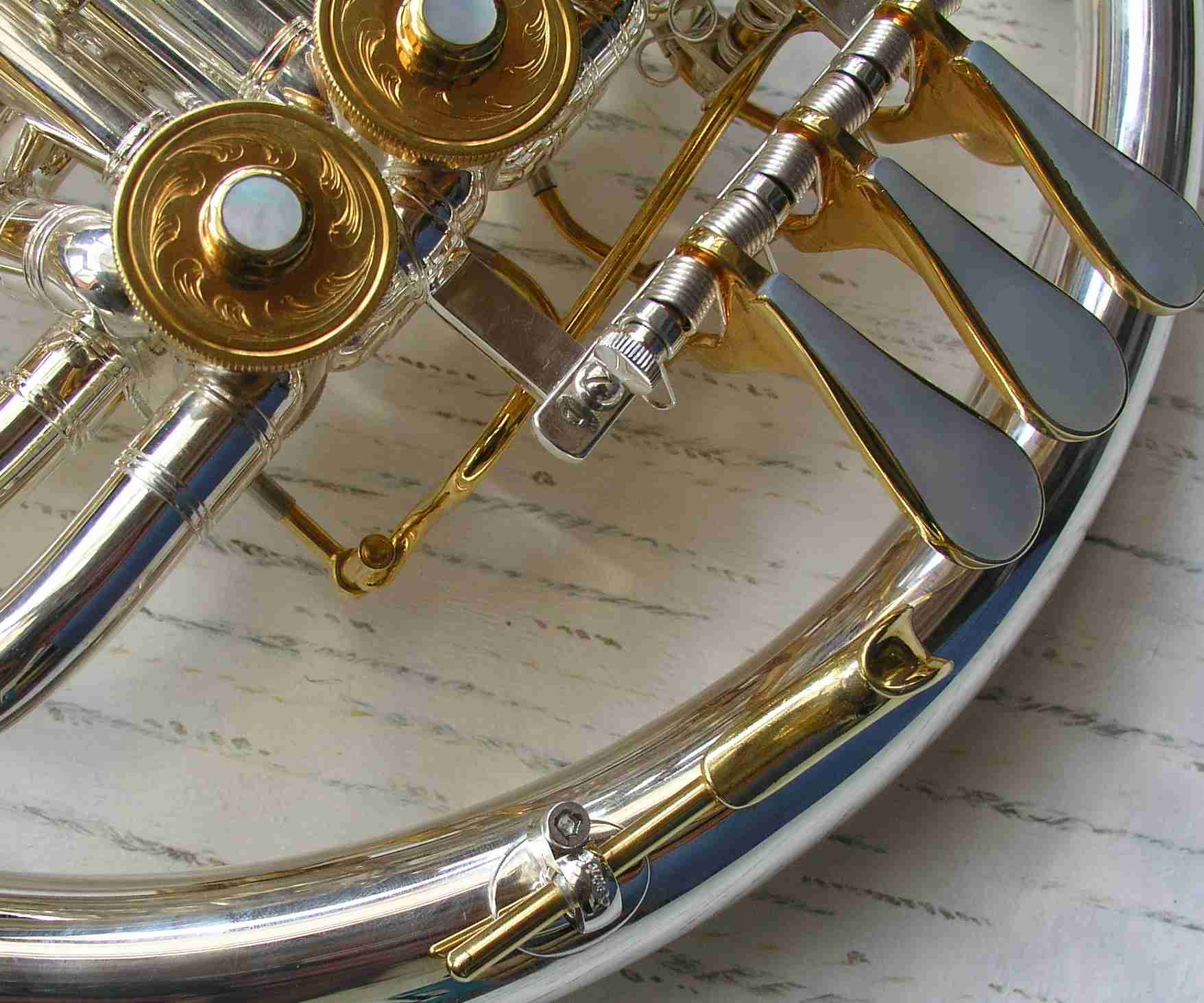 Das Horn., mit dem ich alle hier vorliegenden Siegfriedrufaufnahmen gespielt habe (vorher 23 Jahre lackiert, seit Feb.2003 versilbert und vergoldet).