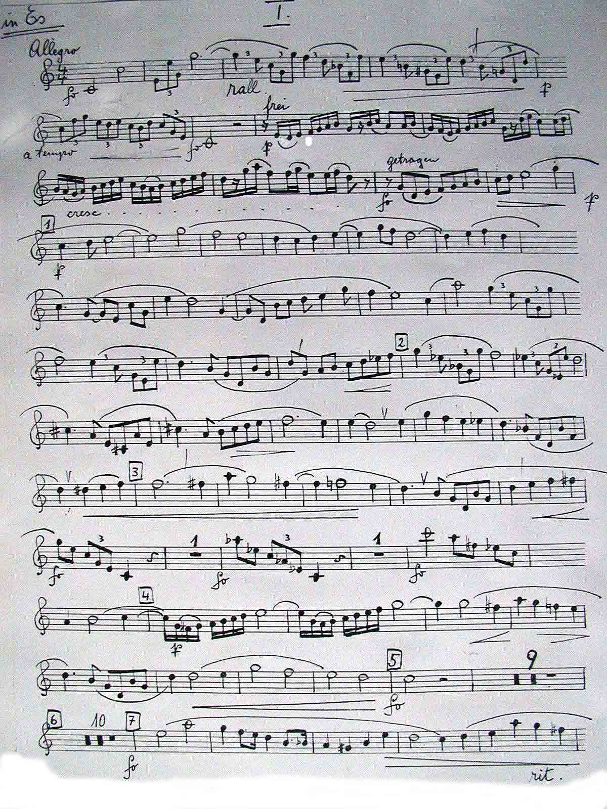 The third sixteenth in the measure at rehearsal number 4 should be corrected into f instead of f#, even the photographic copied Strauss score, written by an unknown copyist´s hand, has f#, but that score is only the working score, Freiberg & Karl Boehm had for the premiere. It is absolutely unclear if this sharp is a real sharp or just a courtesy natural, to remind the player about the f after the f# two measures earlier. Freiberg´s piano reduction, written at the same time as the solo part, has f. He also played f at the premiere & the recording three weeks later. I checked that carefully. Das dritte Sechzehntel im Takt nach Ziffer 4 sollte von fis zu f korrigiert werden, obwohl selbst die fotokopierte Partitur (von unbekannter Kopistenhand geschrieben) das fis hat. Aber das war nur die Arbeitspartitur, die Freiberg und Böhm zur Uraufführung zur Verfügung stand. Freibergs eigener Klavierauszug, von ihm damals selbst arrangiert, hat jedenfalls das f. Er spielte sowohl in der Uraufführung als auch bei der drei Wochen danach erfolgten Aufnahme auch f. Das habe ich sorgfältig geprüft. |