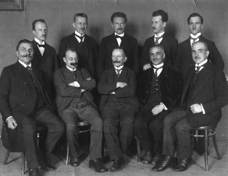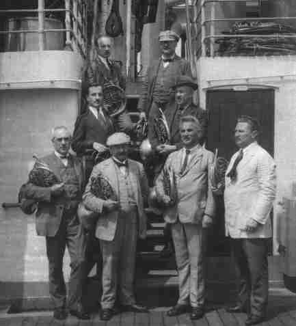 The horn section in the early 1920-ies: front from left: Anton Stark, Karl Stiegler, Christian Nowak, Franz & Hermann Moissl, standing: Karl Vargits ?, Karl Romagnoli, Christian Nowak jun., Karl Wesetzky ?, Hans Koller