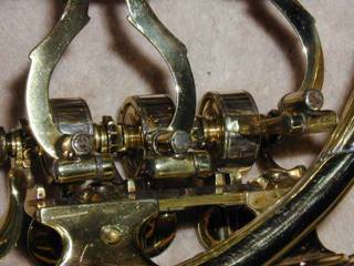 | the Paris tuning slide on place | The main tuning slides for A (left), higher older Munich pitch (middle) - used for Bb & F, new Paris pitch (right) |