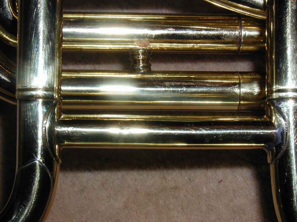 | the Bb-slides mounted on the valve system | the solder joint on the maintuning slide; the main tuning slide for F is lost. |
