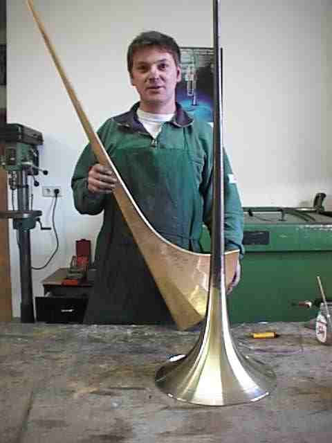 Es kann auch ein Horn mit festem Becher gebaut werden, jedoch ist dann der Preis € 5.200.- statt € 4.700.-. Der Preisunterschied ist daher zu verstehen, daß die Arbeit mit festem Schallbecher viel aufwendiger ist. click below for the main index: